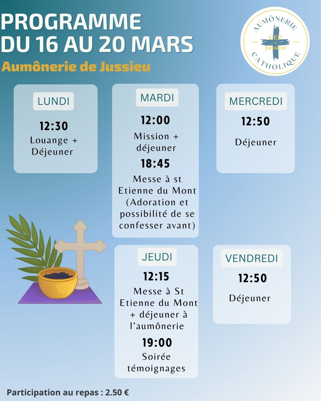 Vous êtes étudiants à Jussieu ou dans le quartier, soyez les bienvenus à l’aumônerie étudiante!